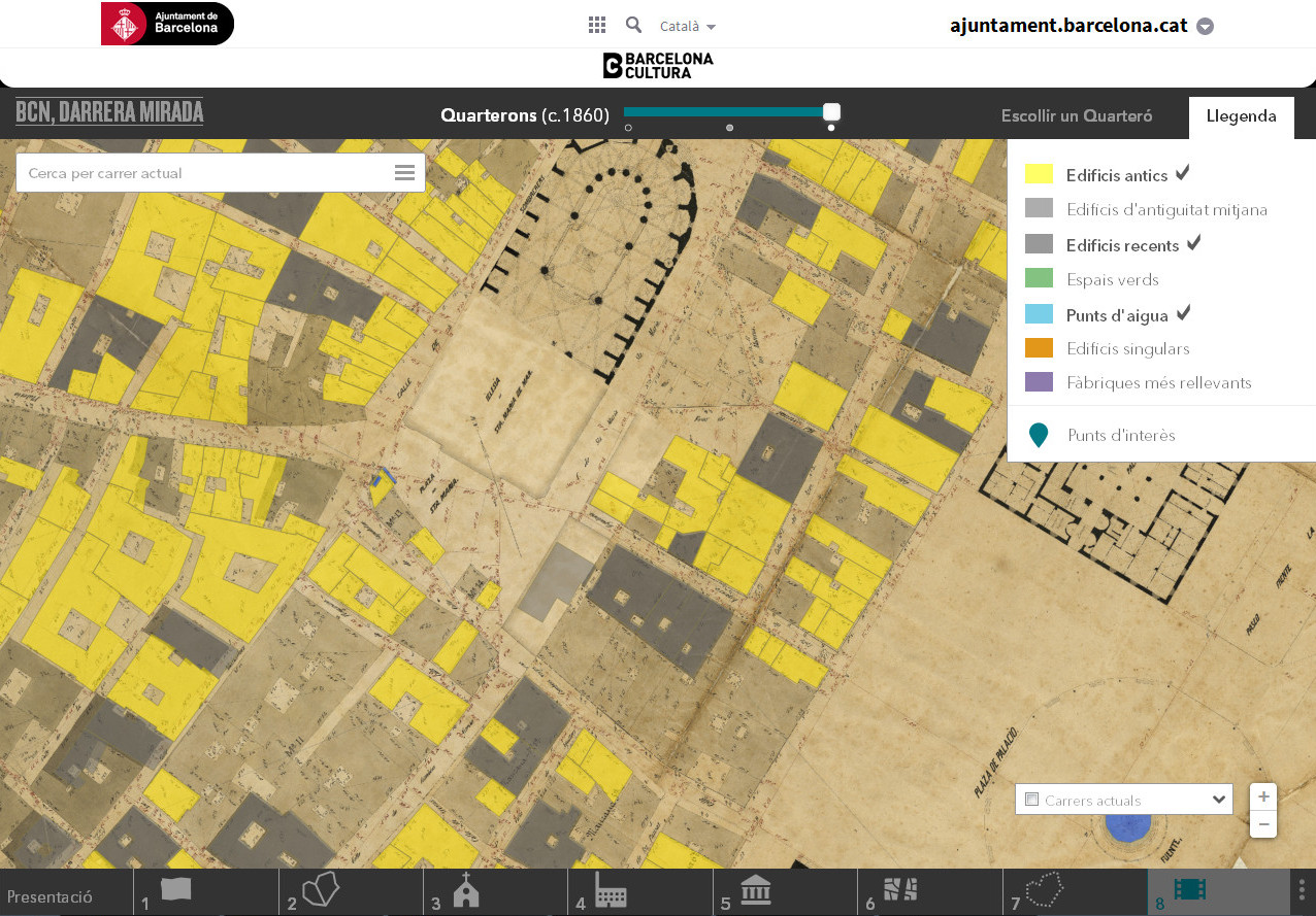 “Barcelona, darrera mirada”: el primer gran projecte en el que ha col·laborat Barchinona.cat Barcelona, darrera mirada és un projecte multimedia elaborat per l’Arxiu Històric de la Ciutat de Barcelona i el Departament de Sistemes d’Informació de l’ICUB que té com a objectiu mostrar una de las joies que custodia l'Arxiu Històric de la Ciutat de Barcelona: els Quarterons Garriga i Roca, un conjunt de plànols que retraten la Barcelona de mitjan segle xix, quan la ciutat encara mantenia la forma de ciutat envoltada de muralles, tot i que aquestes ja havien sigut enderrocades. A Barchinona.cat ens hem encarregat de l'assessorament històric del projecte, de la redacció dels textos, de la recerca documental i fotogràfica i també de la vectorització cartogràfica dels plànols, és a dir, del seu redibuixat, i de l’elaboració de les capes temàtiques. Hem format part d’un equip de més de quaranta professionals i estem més que satisfets del resultat final. Voleu passejar-vos com mai no ho havieu fet abans per la Barcelona de mitjan segle xix? Esperem que us agradi. Una abraçada, Xavier Cazeneuve, Ana Shelly i Albert Cubeles |